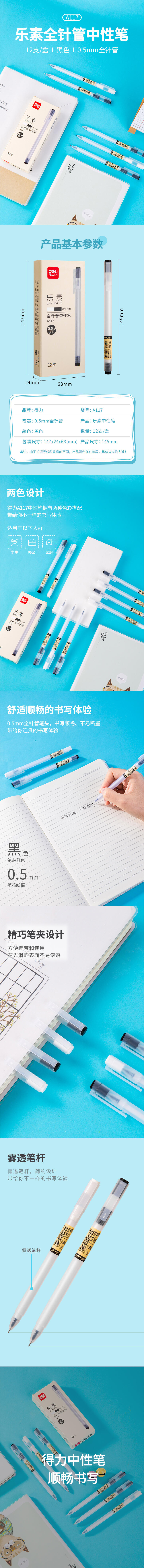 商品名称:得力(deli)A117中性笔学生水笔签字笔0.5mm 黑色 12支/盒