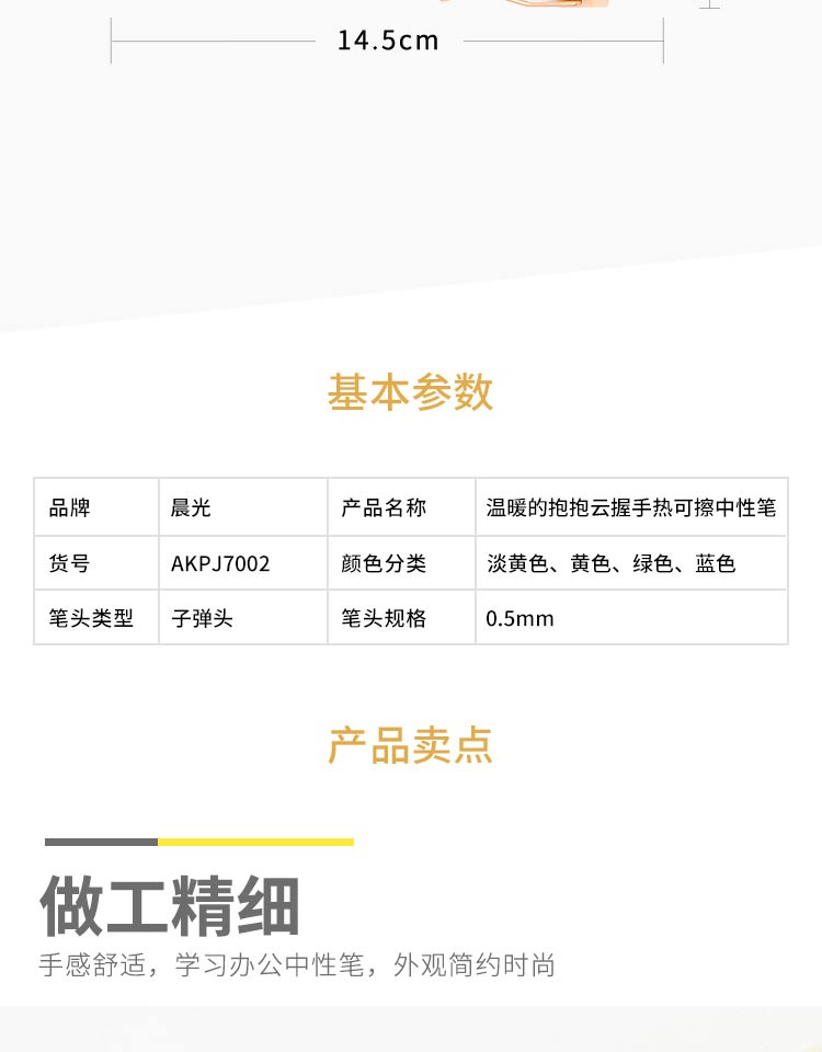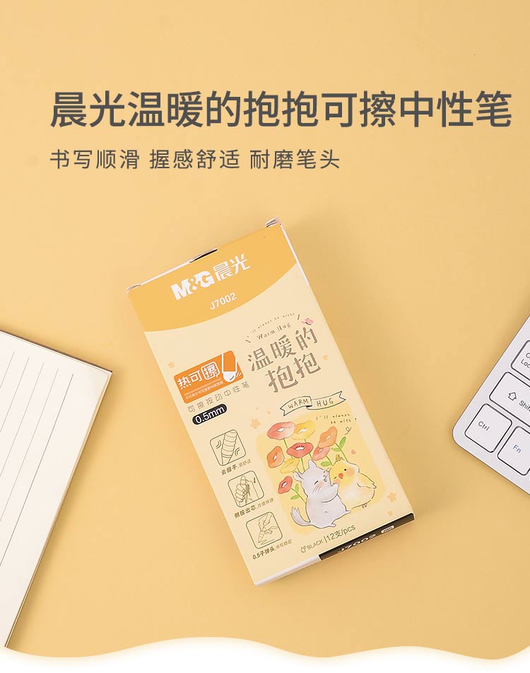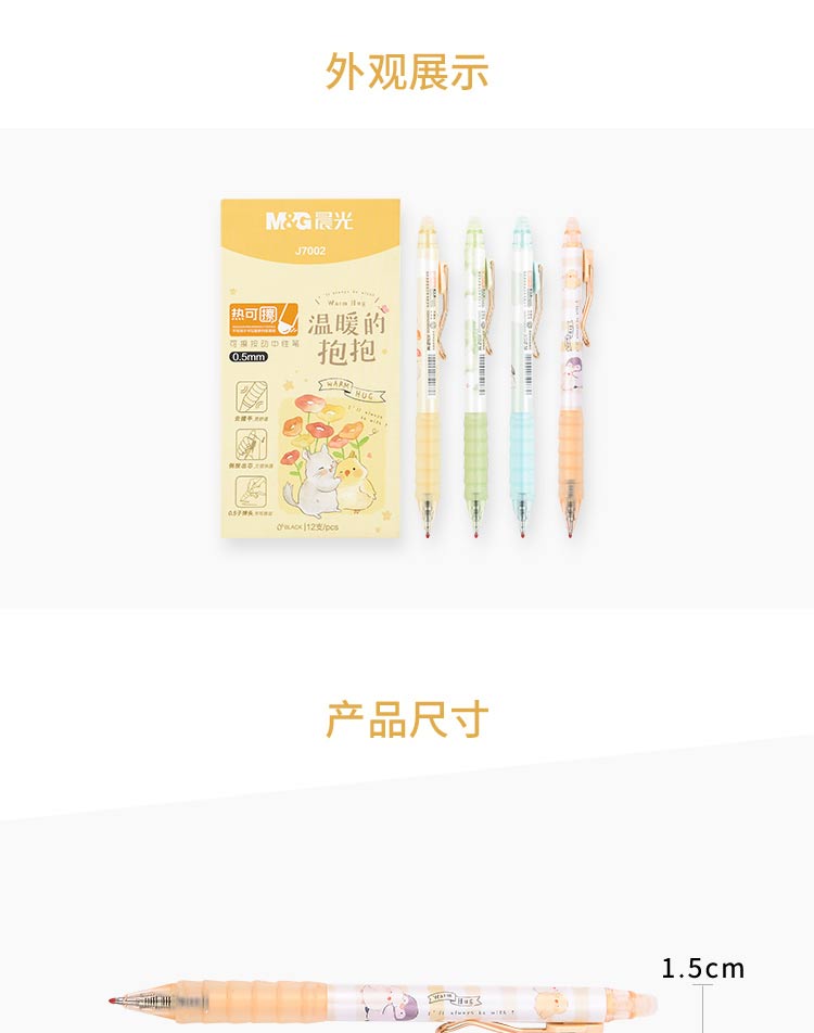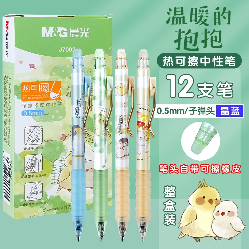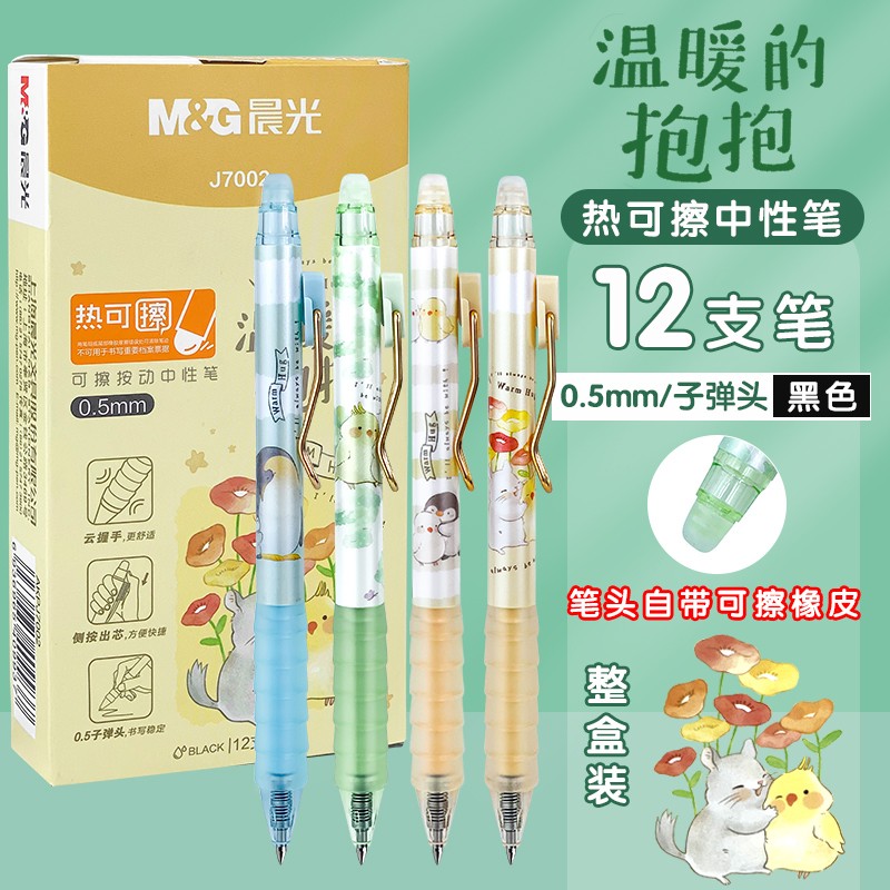 商品名称:晨光(M&G)AKPJ7002温暖的抱抱可擦中性笔0.5mm按动子弹头热可擦油墨 黑色/晶蓝色 (12支/盒)