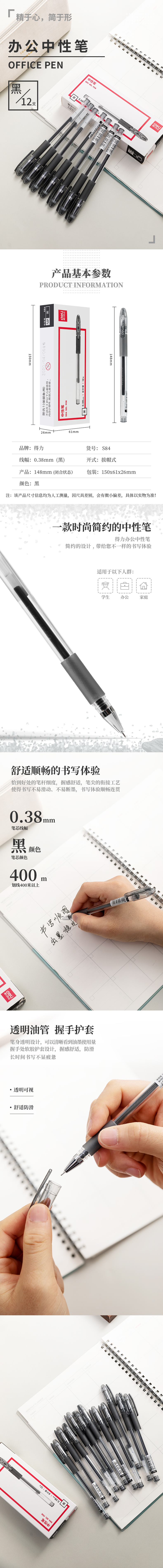 商品名称:得力(deli)0.38mm中性笔 签字笔水笔 财务专用笔 全针管12支/盒S84