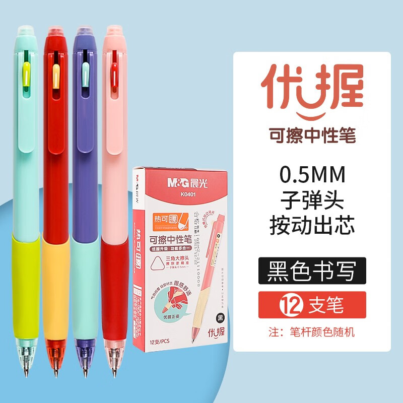 商品名称:晨光(M&G)AKPK0401优握系列热可擦中性笔学生用0.5mm按动易擦可擦 黑色 (12支/盒)