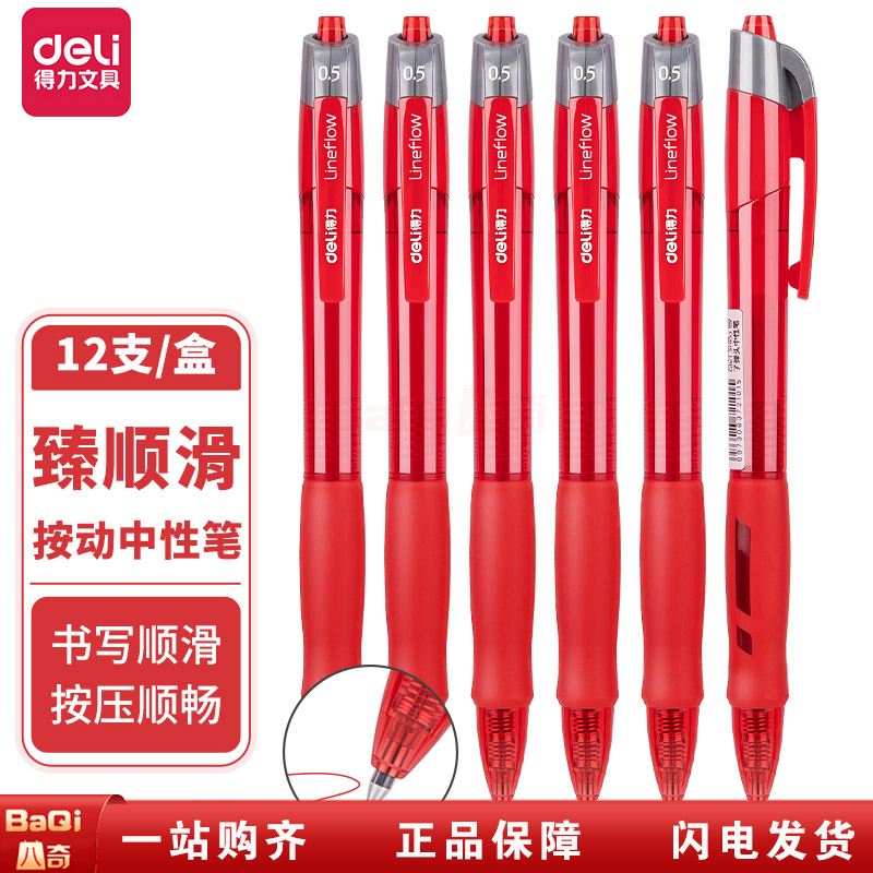 商品名称:得力S08臻顺滑办公中性笔0.5mm弹簧头(红色)