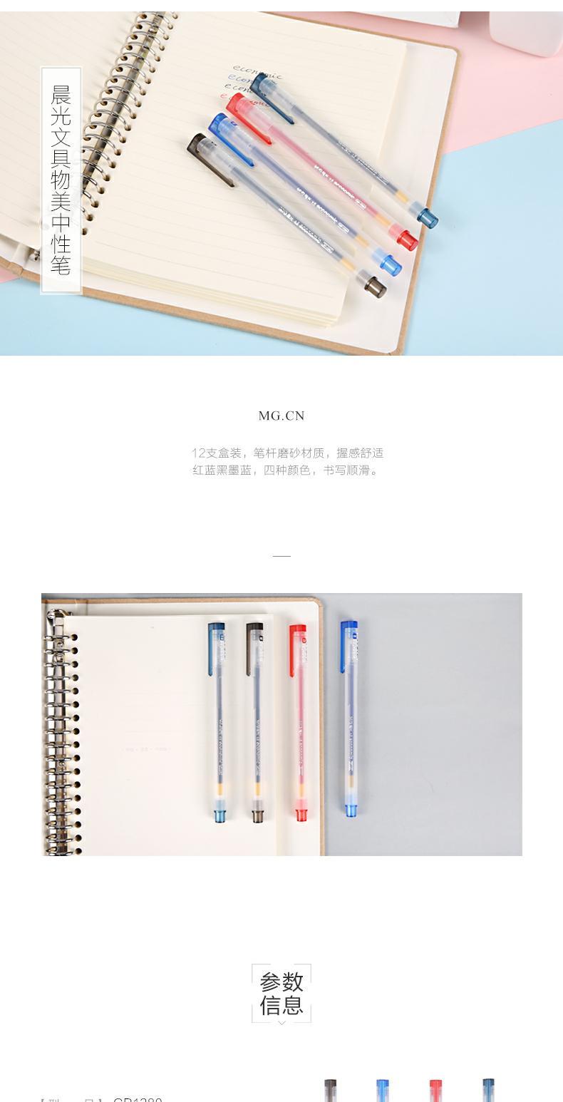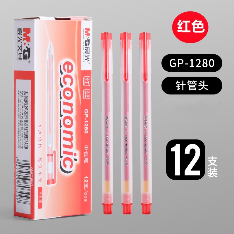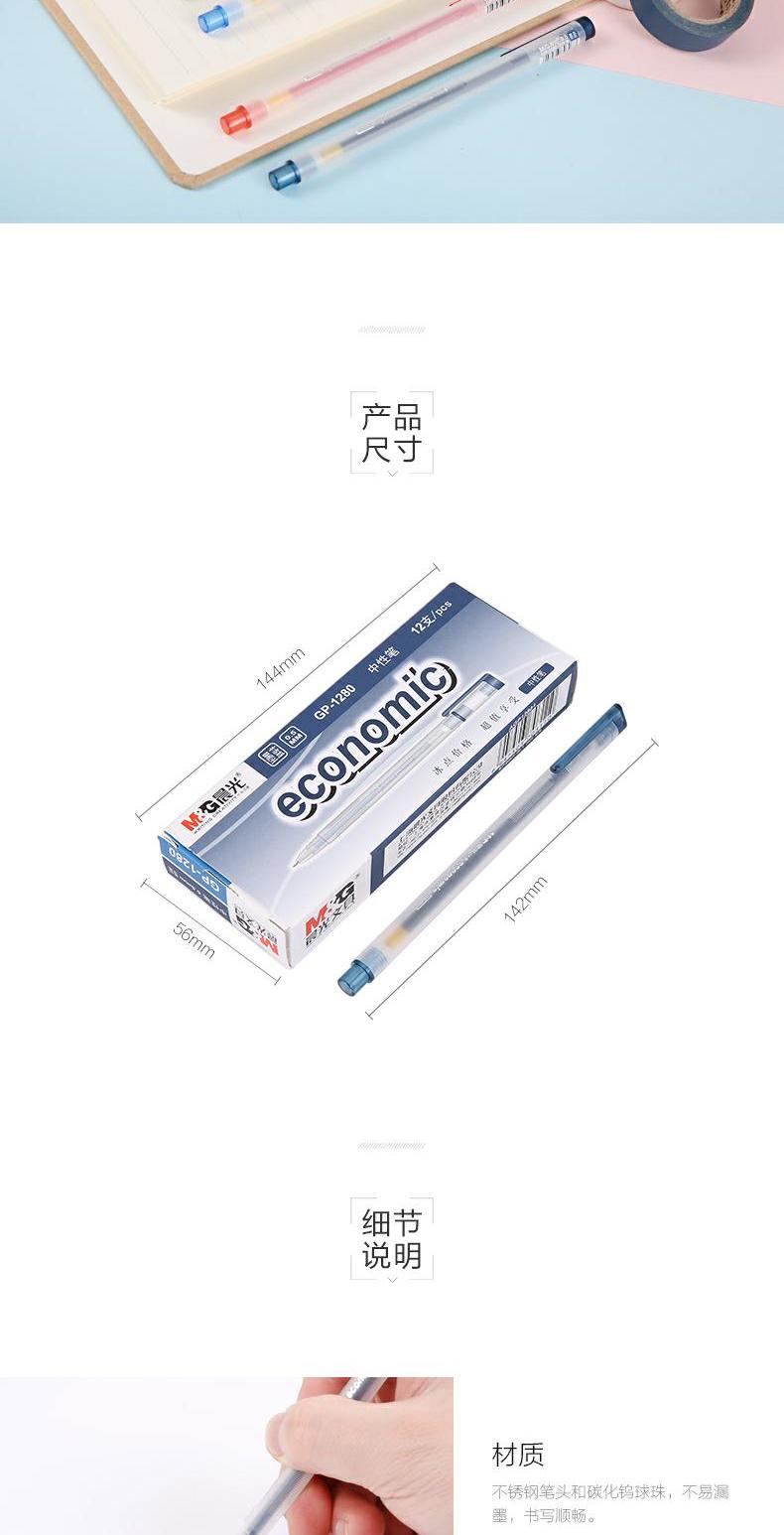 商品名称:晨光(M&G)GP1280拔冒中性笔0.5mm半针管黑笔/红笔/蓝笔/墨蓝色 学生学习办公用 (12支/盒)