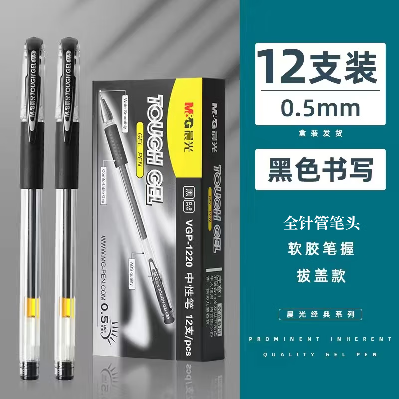 商品名称:晨光(M&G)VGP1220中性笔全针管头0.5mm学生学习拔帽水笔办公签字笔黑色 (12支/盒)