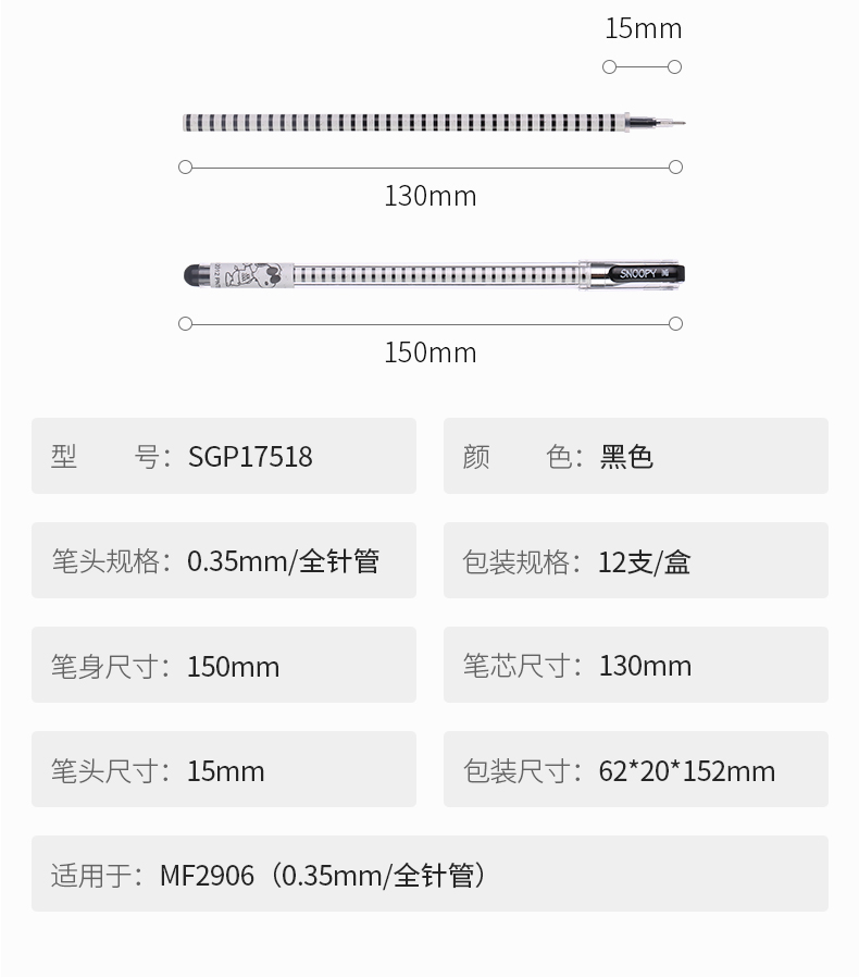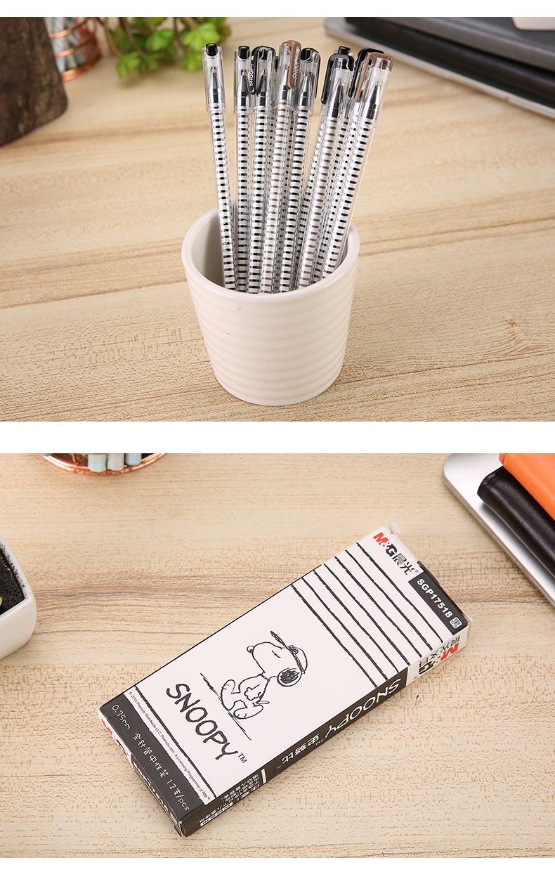 商品名称:晨光(M&G)SGP17518史努比系列拔帽中性笔0.35mm全针管黑色水笔学生签字笔 (12支/盒)