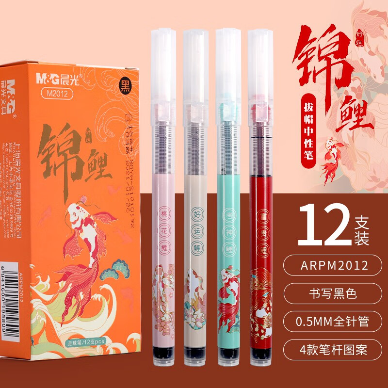 商品名称:晨光(M&G)ARPM2012锦鲤限定直液式走珠笔中性笔高颜值创意礼品中国风签字笔圆珠水笔0.5mm黑色拔帽中性笔 (12支/盒)