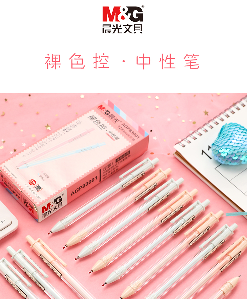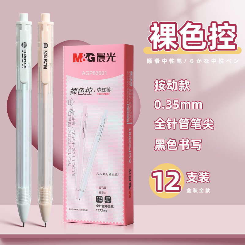 商品名称:晨光(M&G)AGP83001裸色控系列按动中性笔0.35mm针管学生用极细黑笔 (12支/盒)