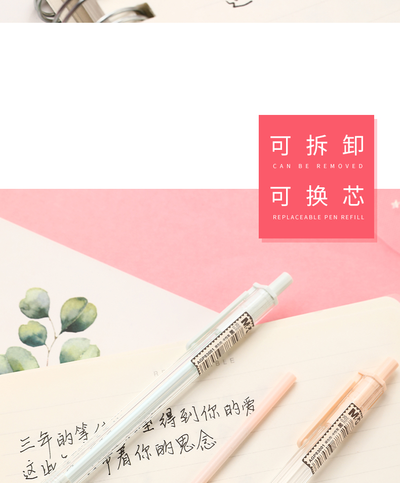 晨光(M&G)AGP83001裸色控系列按动中性笔0.35mm针管学生用极细黑笔 (12支/盒)