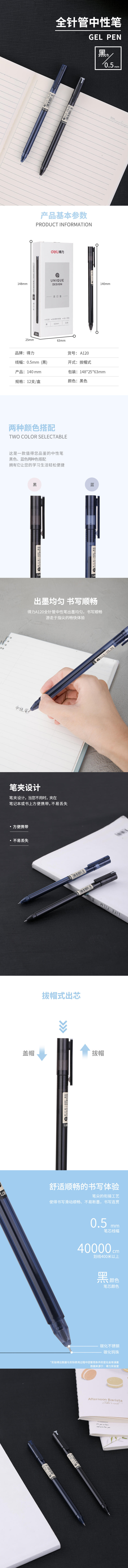 商品名称:得力A120办公中性笔0.5mm全针管黑色签字笔 12支/盒