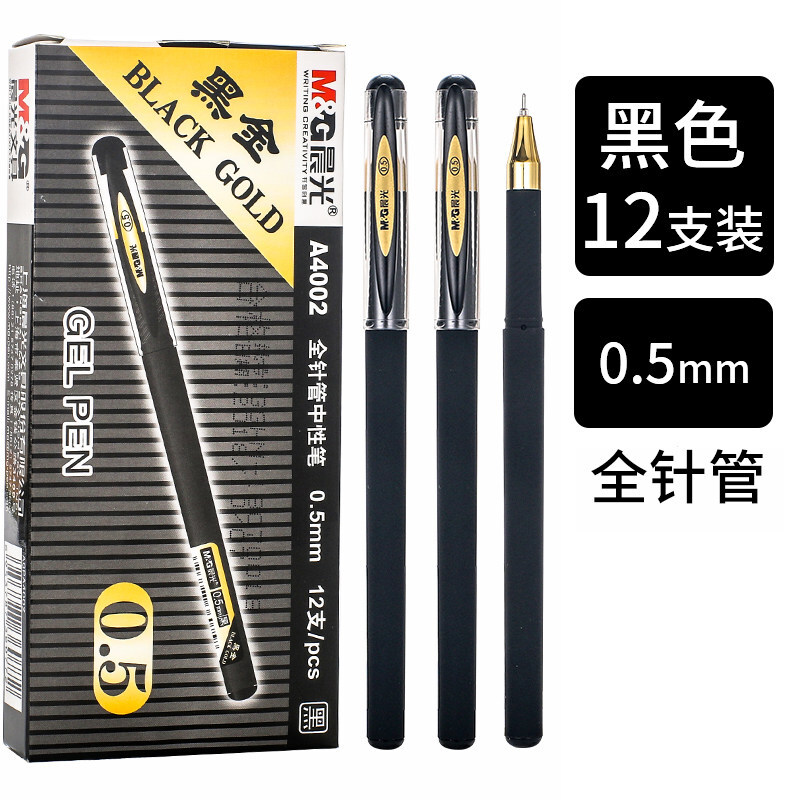 商品名称:晨光(M&G)AGPA4002黑金系列中性笔0.5mm全针管黑色磨砂杆学生用考试水笔办公商务签字笔 (12/盒)