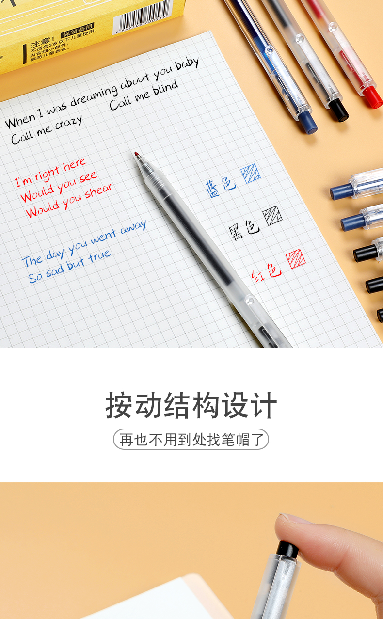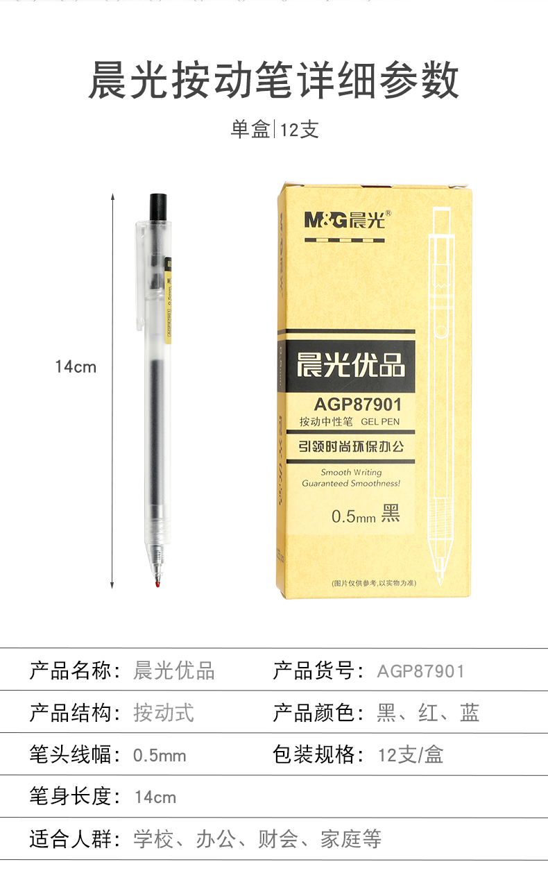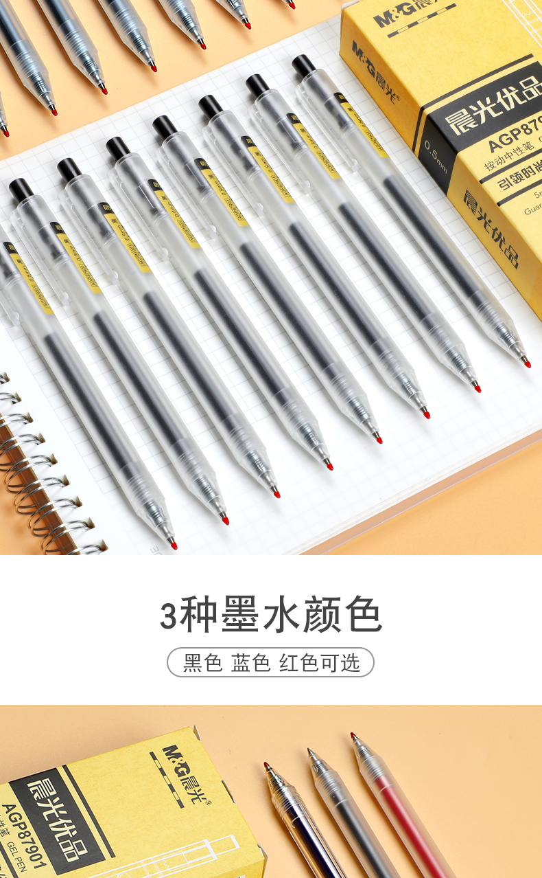 商品名称:晨光(M&G)AGP87901按动中性笔0.5mm 磨砂杆签字笔碳素笔 黑色/红色/蓝色 (12支/盒)