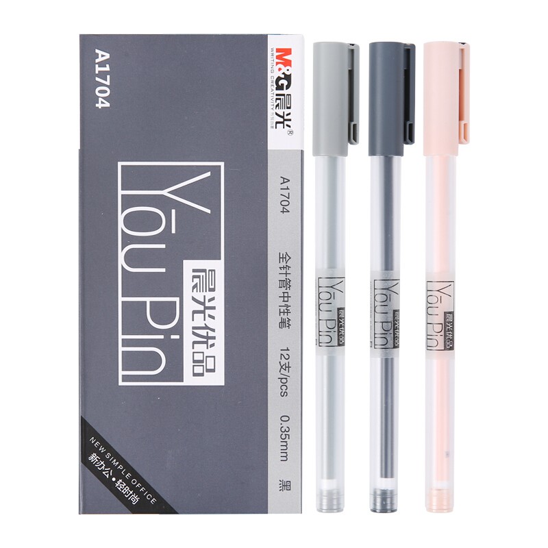 商品名称:晨光(M&G)AGPA1704黑色中性笔全针管按动签字笔 本味优品系列水笔 0.35mm (12支/盒)