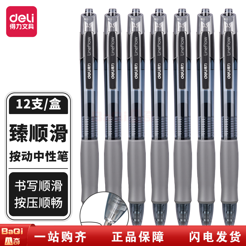 得力(deli)S09臻顺滑按动中性笔签字笔黑色 时尚办公0.5mm子弹头12支/盒 黑色