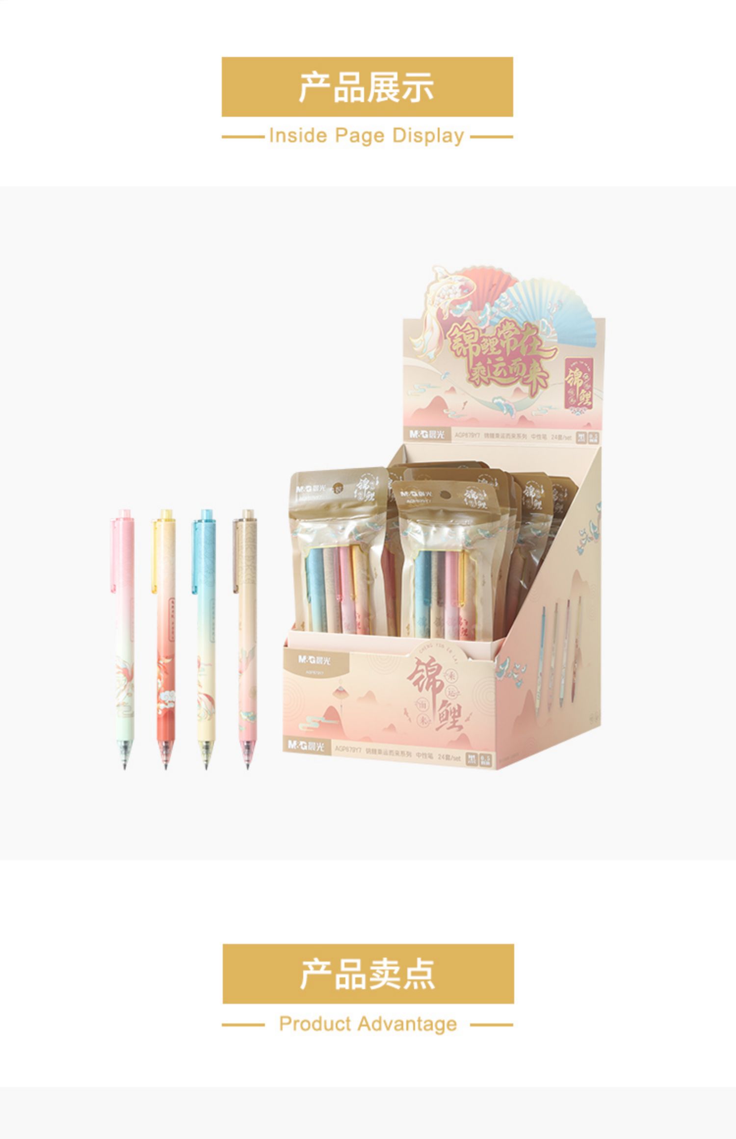商品名称:晨光(M&G)AGP879Y7锦鲤中性笔学生用0.5mm按动子弹头黑笔高颜值笔 (4支装)