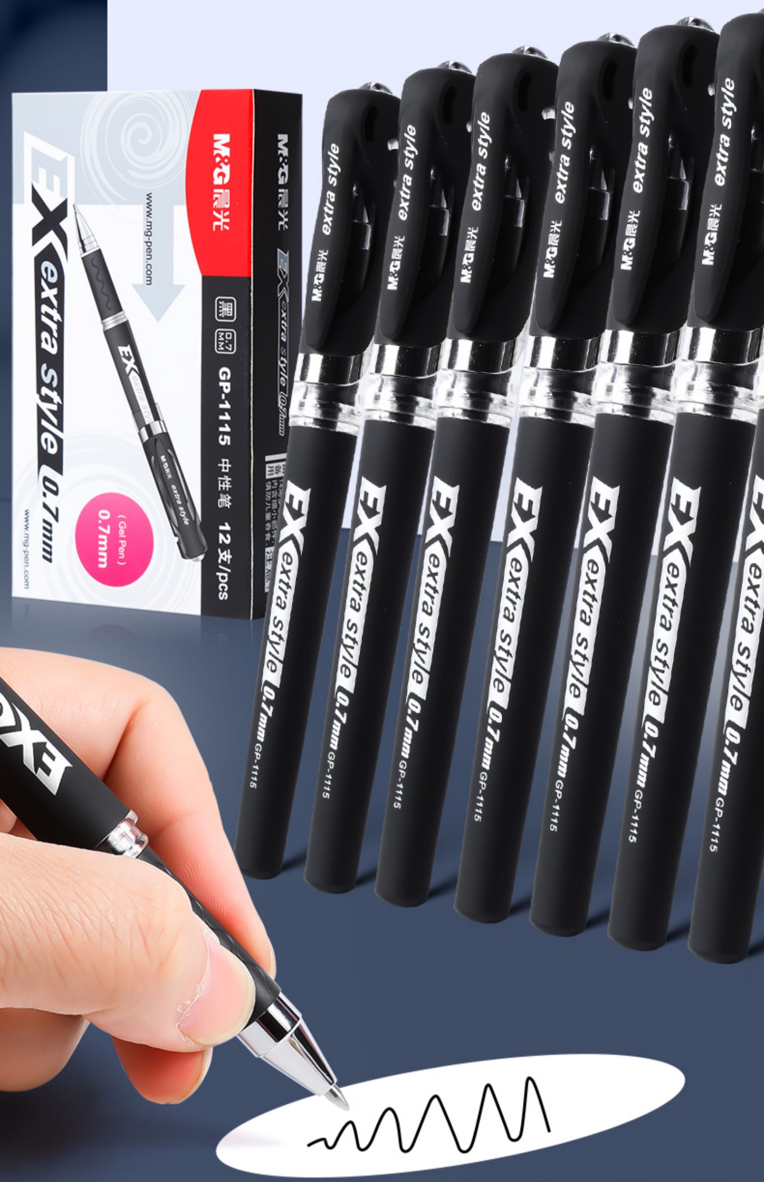 商品名称:晨光(M&G)GP1115办公商务中性笔0.7mm黑色水笔磨砂黑笔练字书法学生用办公签名简约水性笔 (12支/盒)