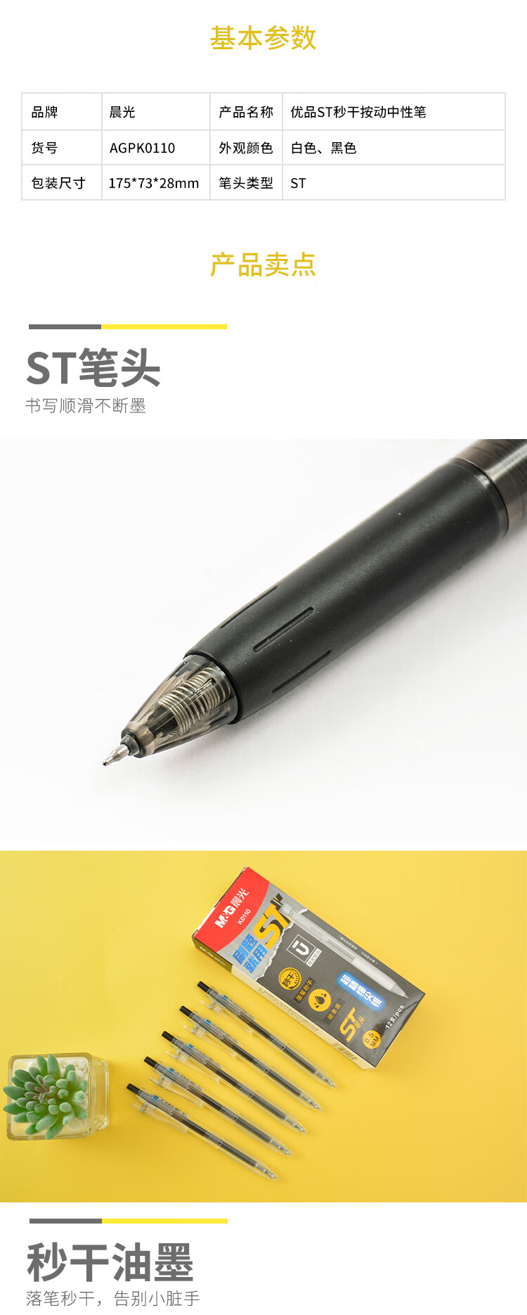 商品名称:晨光(M&G)AGPK0110中性笔水性笔水笔优品ST按动刷题 0.5mm 黑色 (12支/盒)