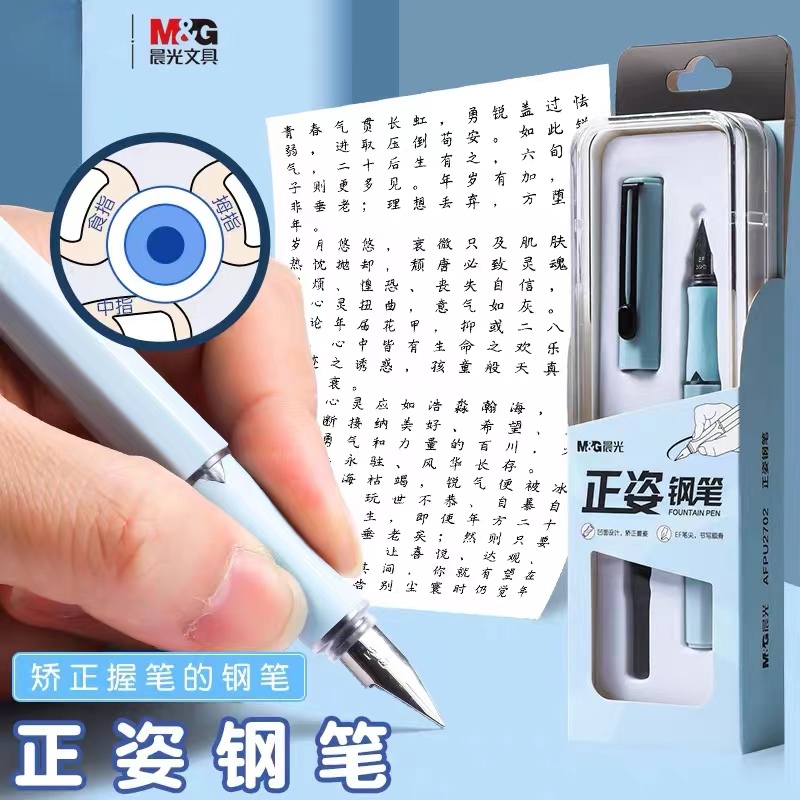 晨光(M&G)AFPU2702正姿钢笔EF笔尖旋转吸墨初学者学生书写练字笔墨水笔 0.38mm 单套装