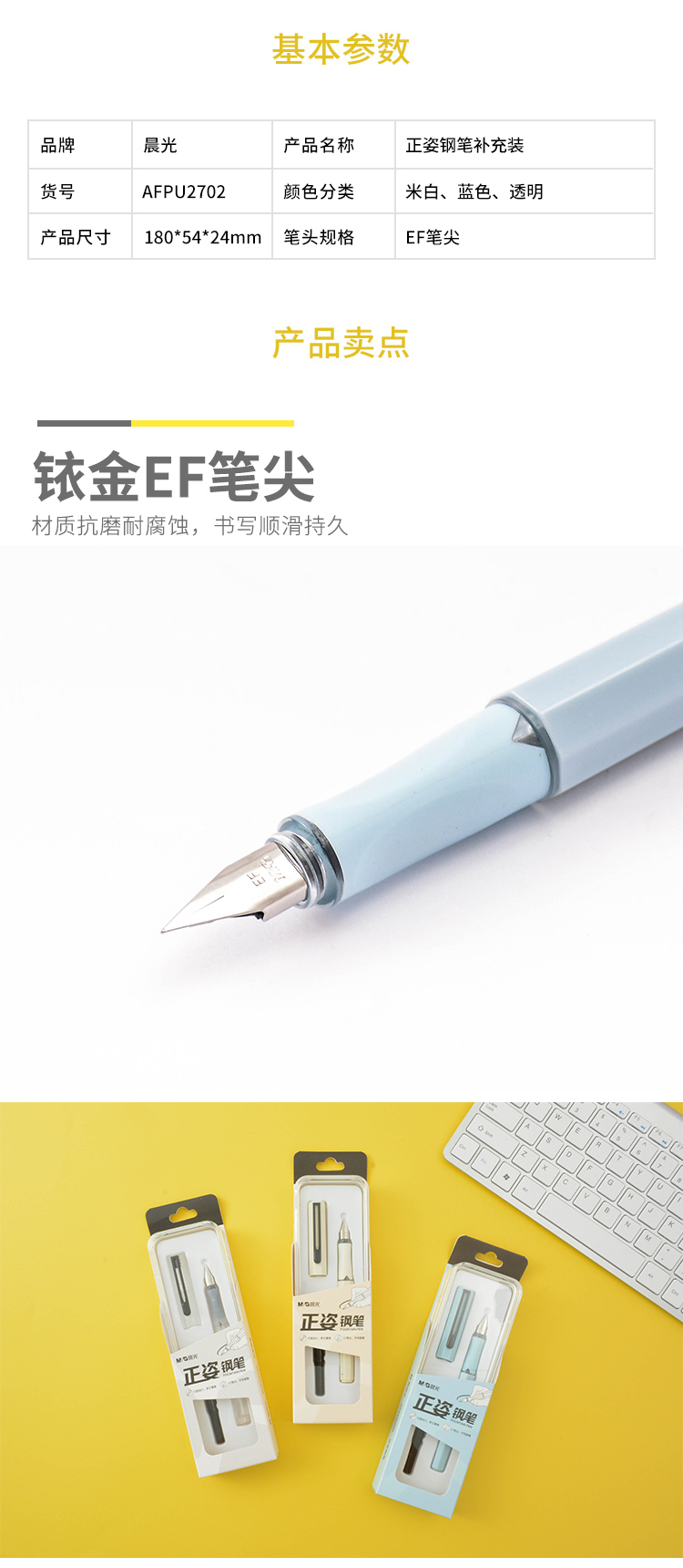 商品名称:晨光(M&G)AFPU2702正姿钢笔EF笔尖旋转吸墨初学者学生书写练字笔墨水笔 0.38mm 单套装