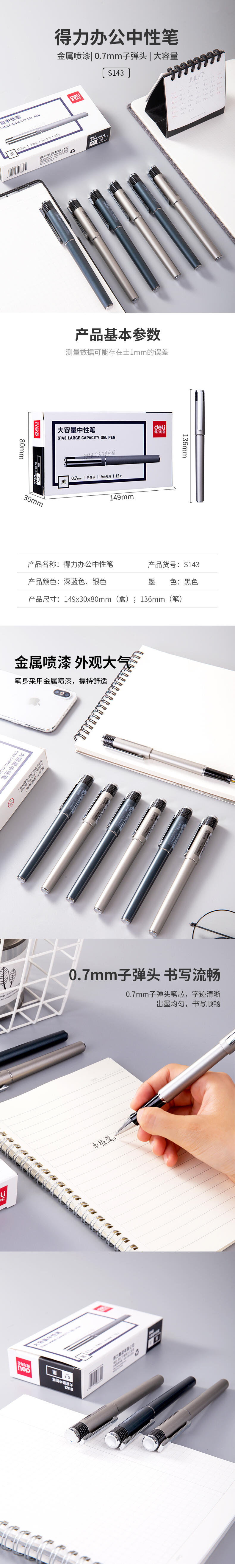 商品名称:得力S143商务办公大容量中性笔0.7mm子弹头 黑色 12支/盒