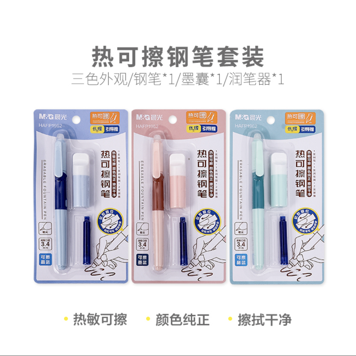 晨光(M&G)HAFP1962优握可擦正姿钢笔套装 钢笔+墨囊+润笔器 晶蓝/墨蓝 (1卡装)