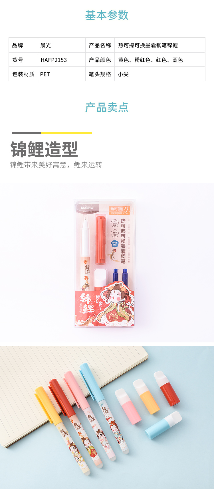 商品名称:晨光(M&G)HAFP2153热可擦可换墨囊钢笔锦鲤晶蓝小学生卡通可爱练字钢笔套装 (1卡装)