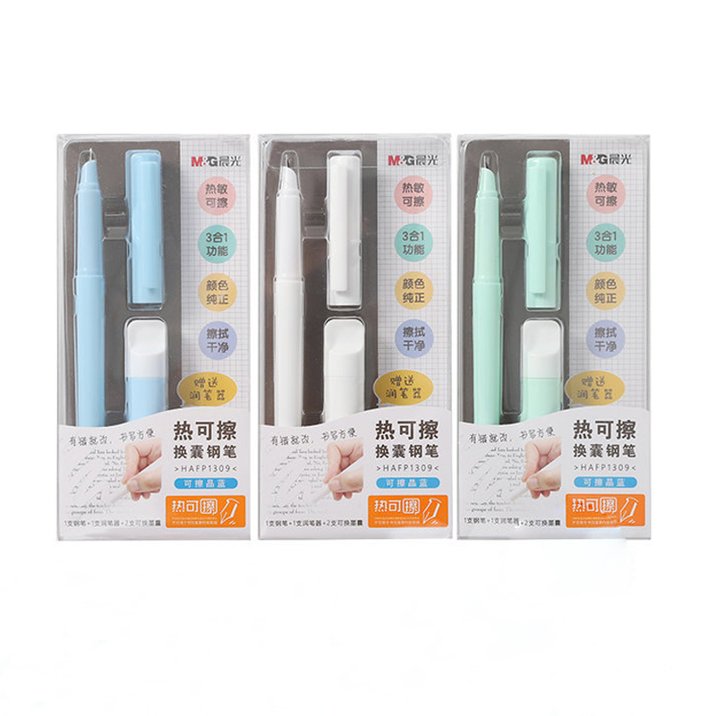 晨光(M&G)HAFP1309热可擦钢笔套装可擦晶蓝小学生练字钢笔暗尖钢笔 (1卡装)