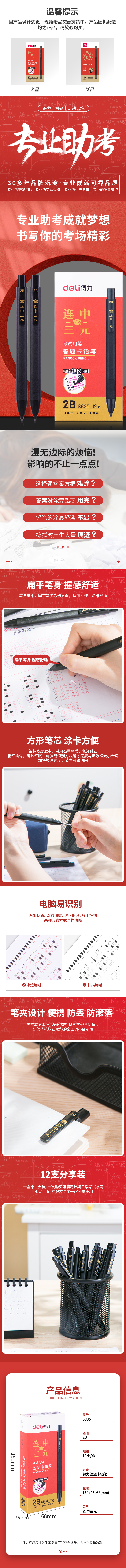 商品名称:得力(deli)连中三元考试涂卡铅笔 2B自动铅笔 2B铅笔 考试专用12支/盒S835