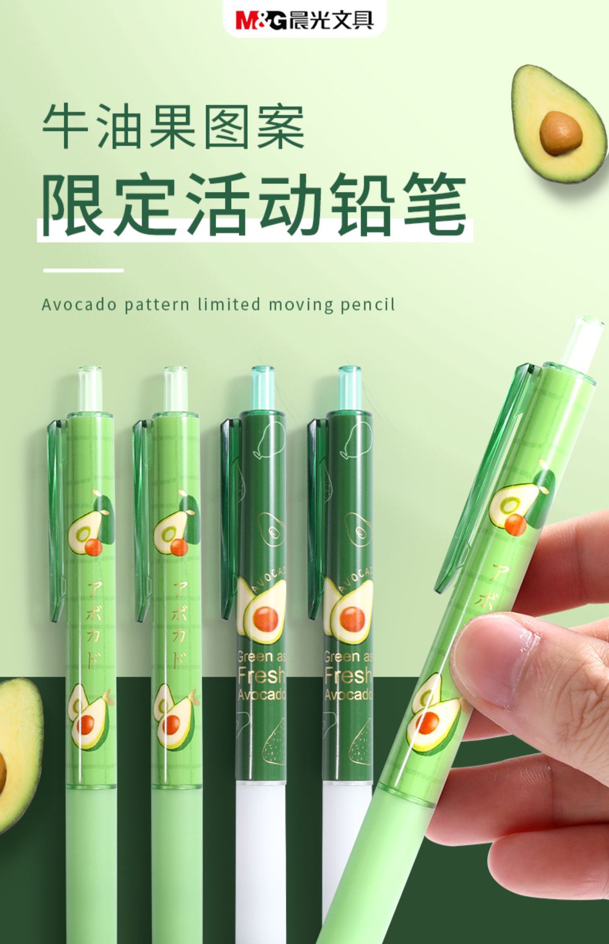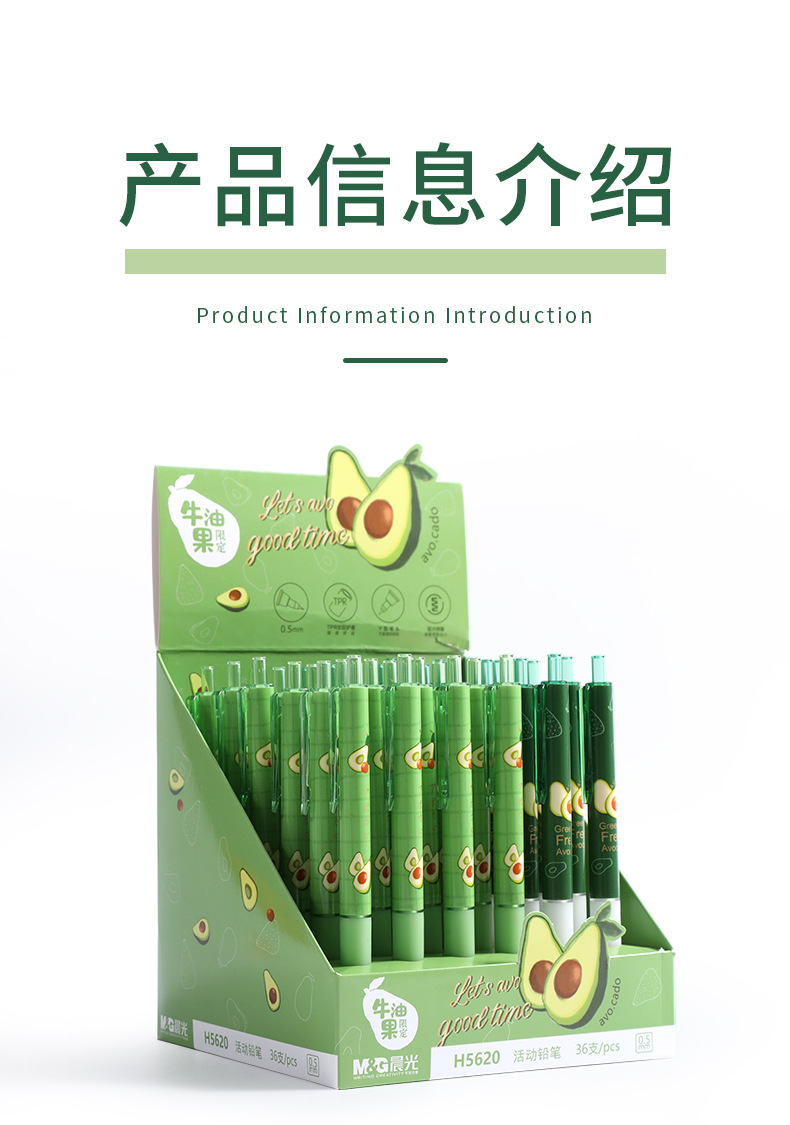 商品名称:晨光(M&G)AMPH5620牛油果限定0.5mm活动铅笔小学生书写绘画用自动铅笔 (36支/盒)
