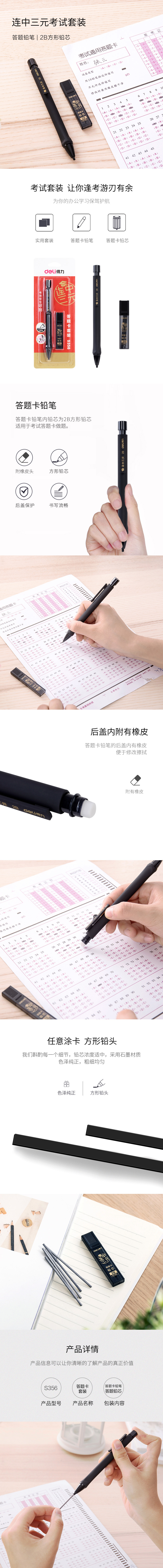 商品名称:得力(deli)S356答题卡2件套活动铅笔2B涂卡铅笔答题铅芯考试专用套装学习文具连中三元助力考试