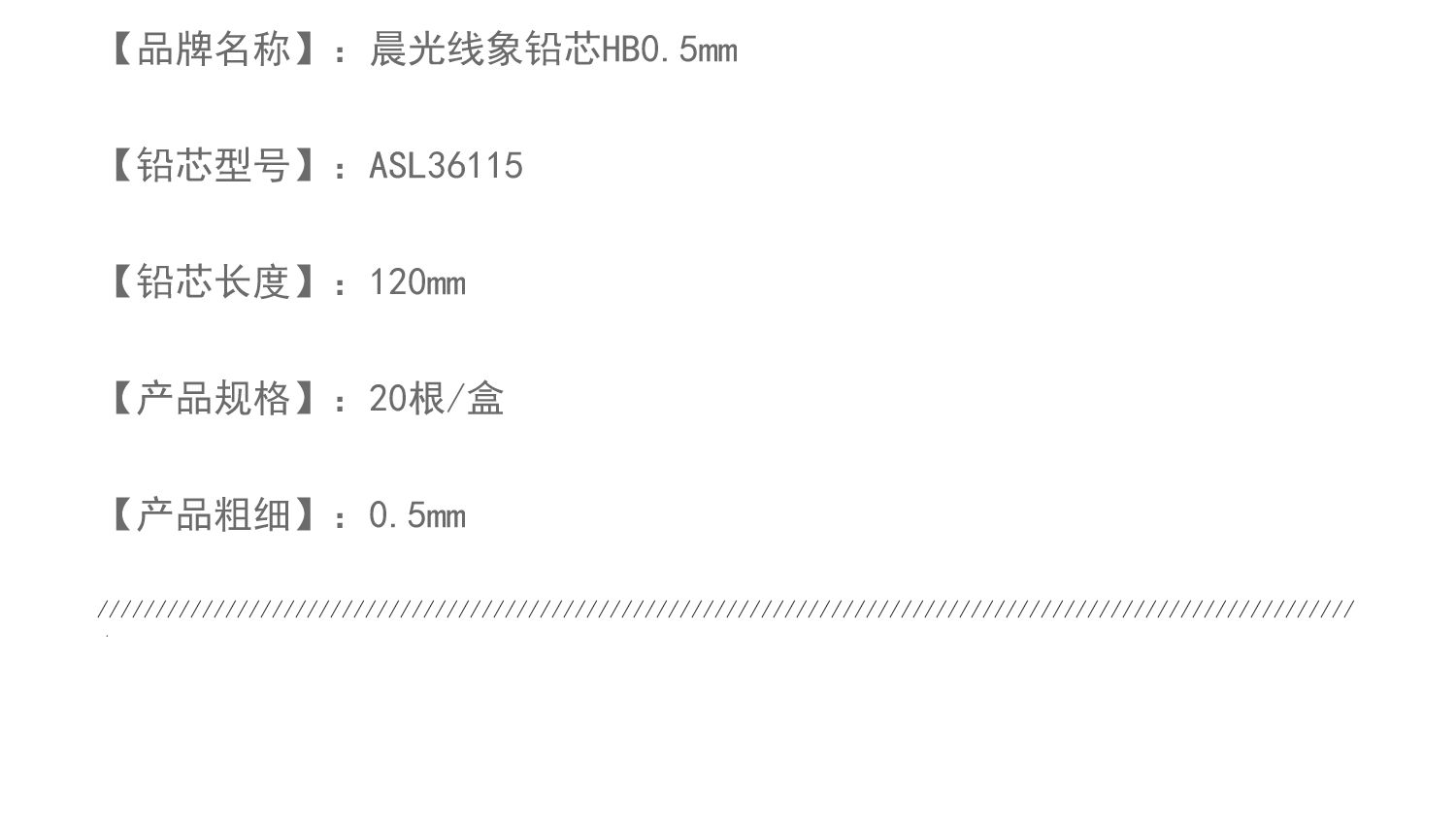 商品名称:晨光(M&G)ASL36115自动铅笔铅芯120mm长度HB活动铅笔芯0.5mm (36支/盒)
