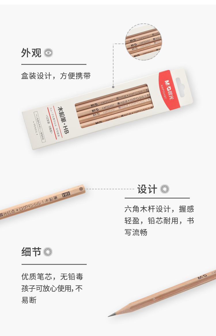 商品名称:晨光(M&G) AWP30497六角铅笔木质木杆简约简单木头小学生儿童书写使用幼儿园无铅毒 (12支/盒)