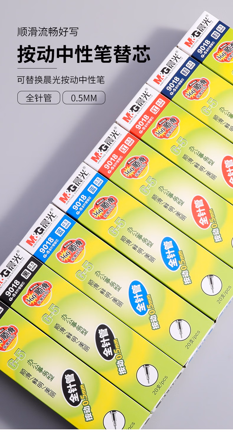 晨光(M&G) 9018全针管头按动笔芯中性笔替芯黑色/红色/蓝色/墨蓝色水笔芯 (20支/盒)