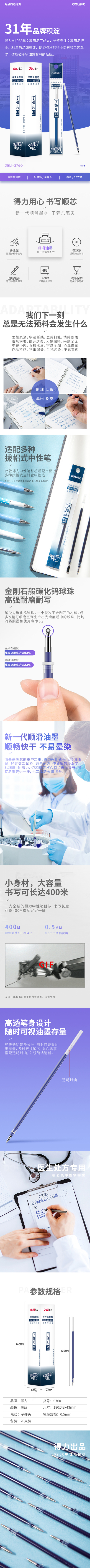 商品名称:得力(deli) S760中性笔芯0.5mm办公书写笔替芯子弹头水笔芯 墨蓝 整盒20支