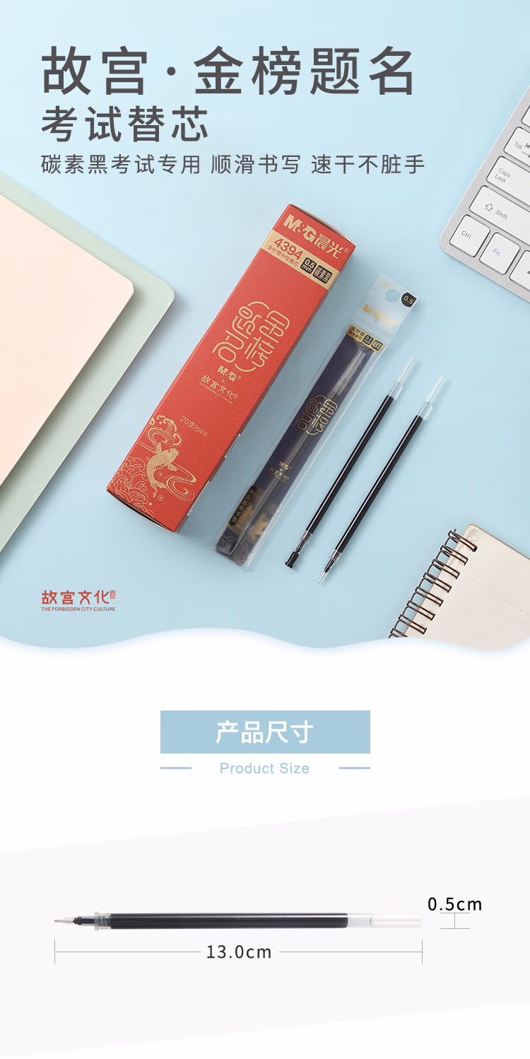 商品名称:晨光(M&G) 4394故宫文化联名金榜题名考试系列速干全针管替芯碳素黑色0.5mm笔芯 (20支/盒)
