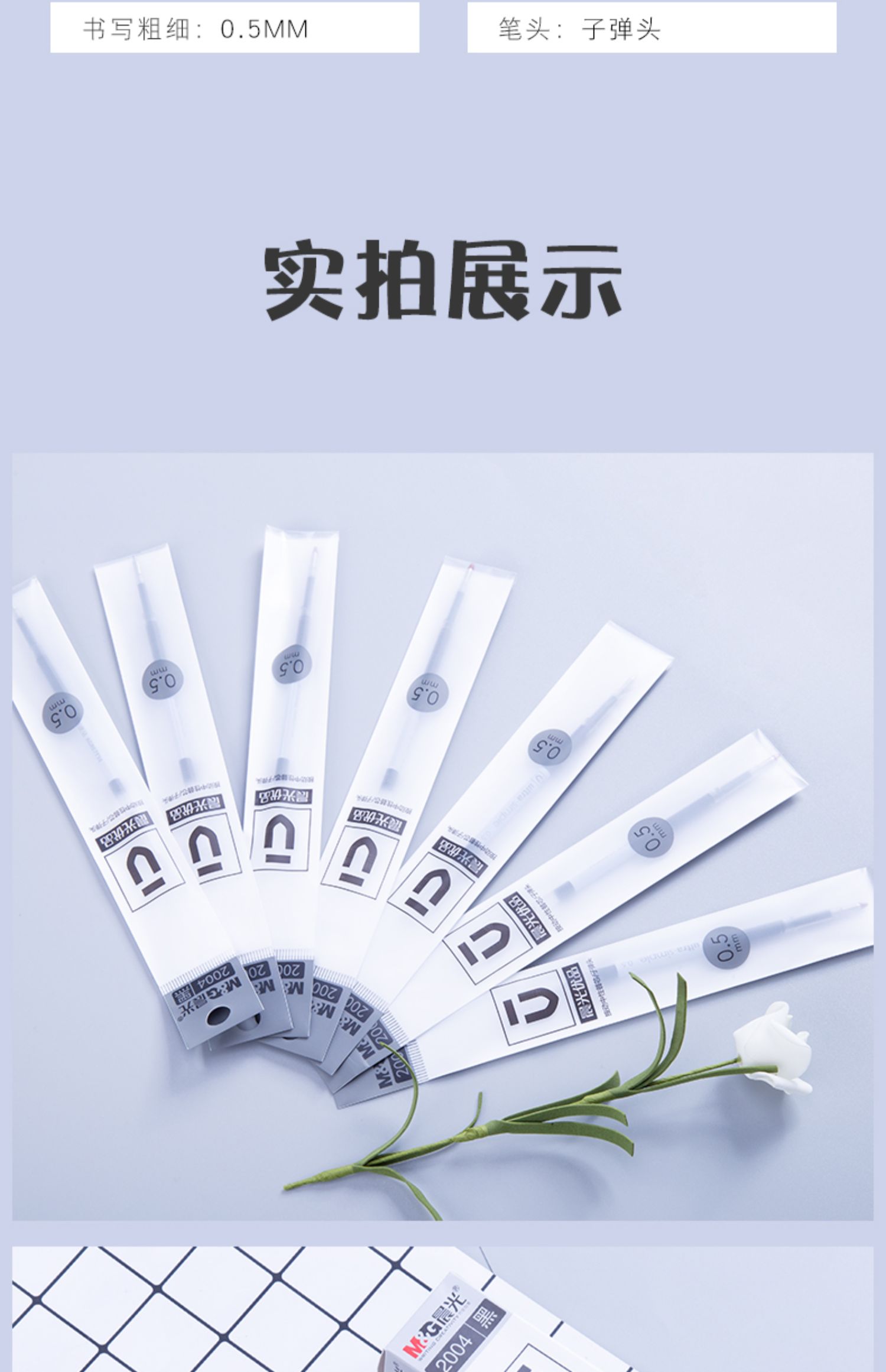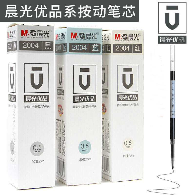 商品名称:晨光(M&G)2004优品按动中性笔芯子弹头0.5mm水笔芯黑色/蓝色/红色 (20支/盒)