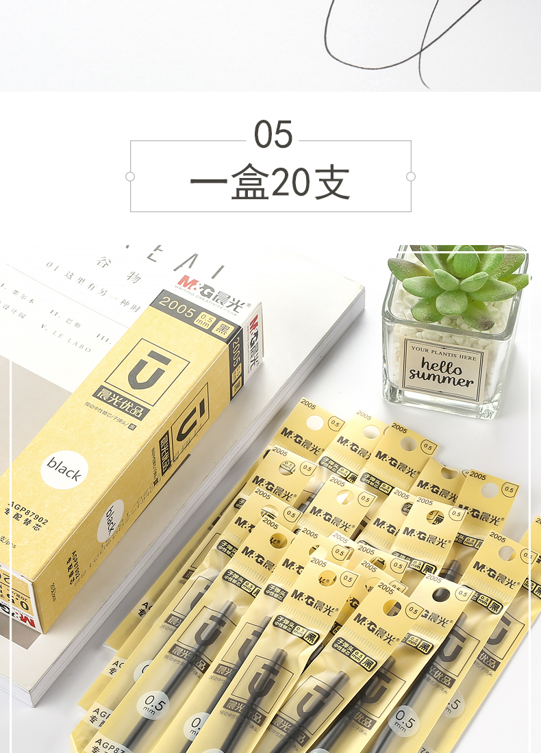 晨光(M&G)2005优品高密度按动中性笔0.5mm水笔签字笔办公学生考试黑色替芯 (20支/盒)