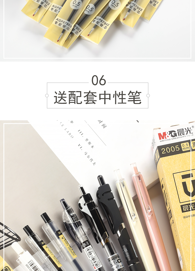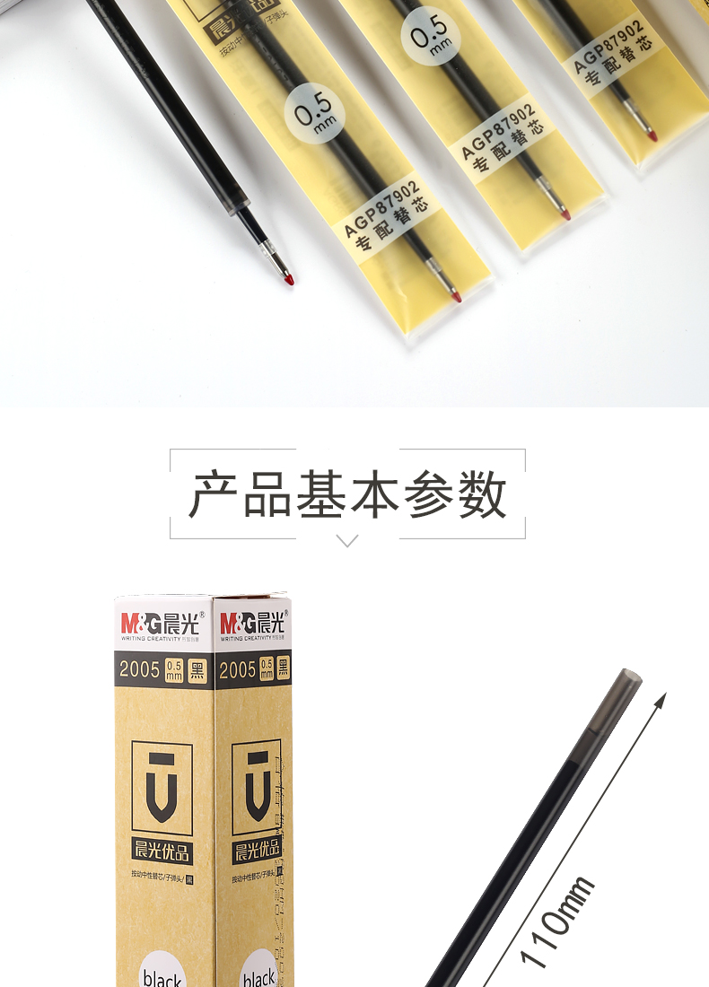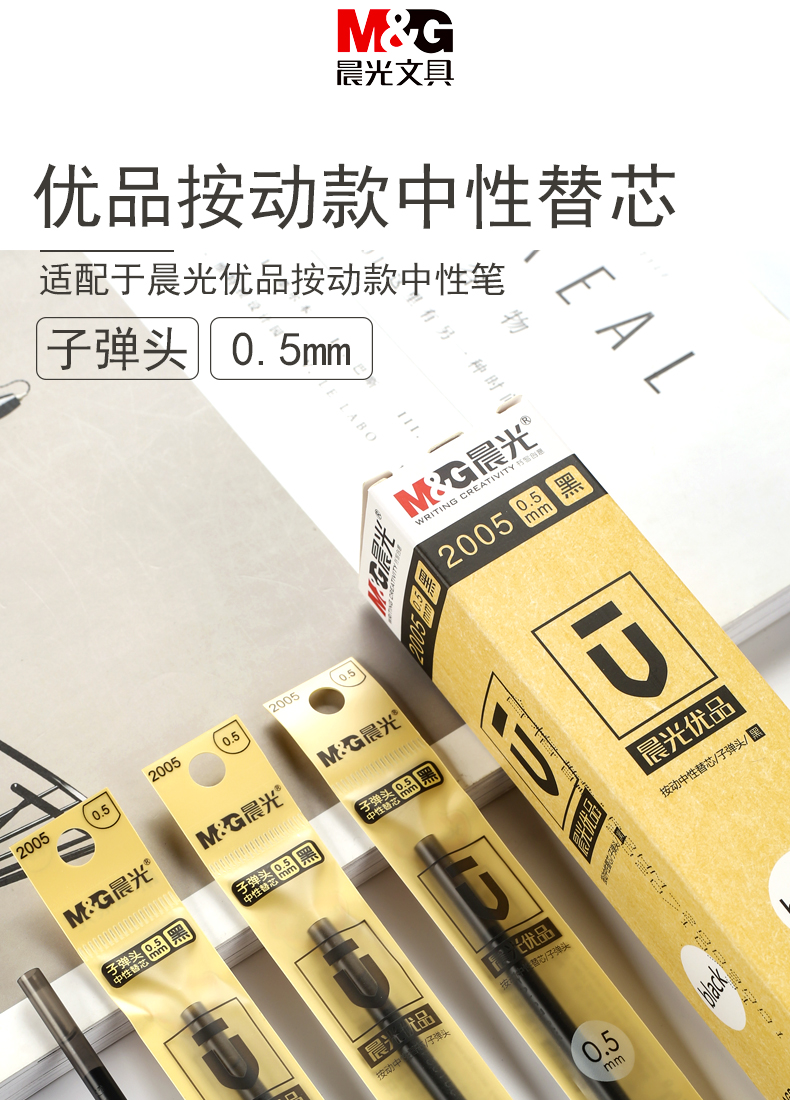 商品名称:晨光(M&G)2005优品高密度按动中性笔0.5mm水笔签字笔办公学生考试黑色替芯 (20支/盒)