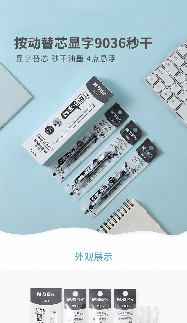 商品名称:晨光(M&G) 9036中性笔笔芯商务办公签字笔全针管0.5mm签名笔学生考试笔替芯 (12支/盒)