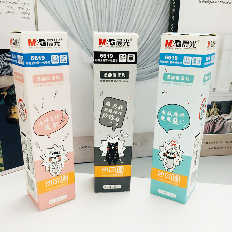商品名称:晨光(M&G)6619惹不起系列卡通热可擦笔芯 全针管可擦替芯0.5mm 黑色/蓝色/墨蓝色 (20支/盒)
