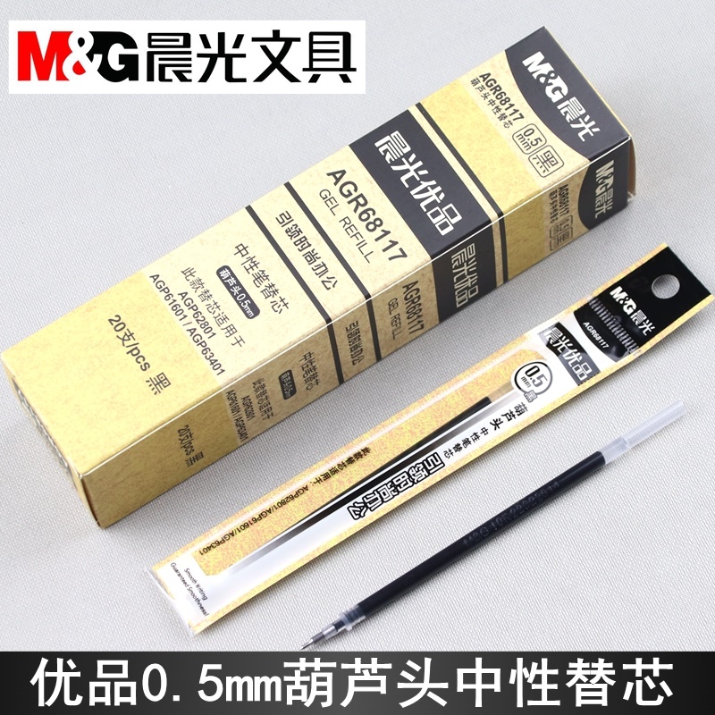 晨光(M&G)AGR68117优品系列中性笔芯0.5mm葫芦头学生办公签字水笔替芯 黑色 (20支/盒)