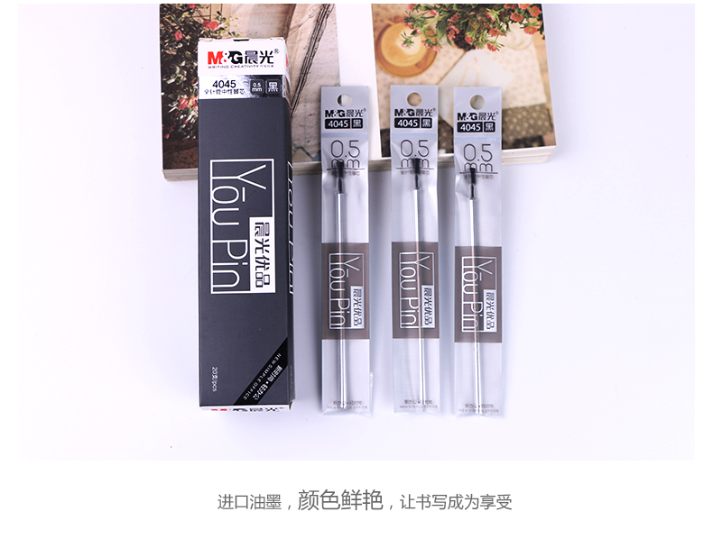 晨光(M&G)4045中性笔笔芯黑0.5mm全针管子弹头水笔优品学生考试笔芯 (20支/盒)