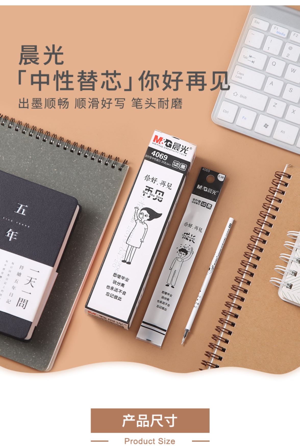 商品名称:晨光(M&G)4069 中性笔替芯水性笔笔芯子弹头全针管替芯黑色 0.38mm (20支/盒)