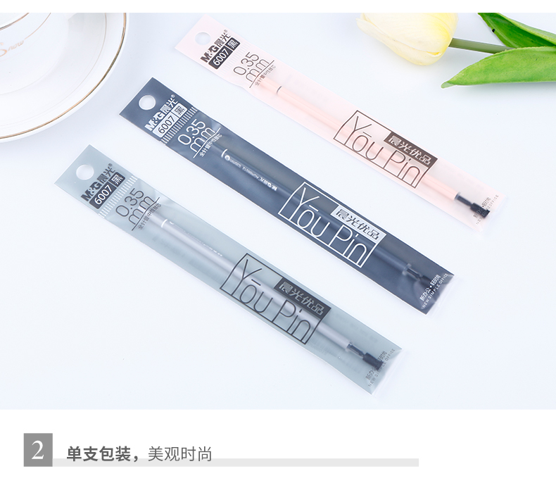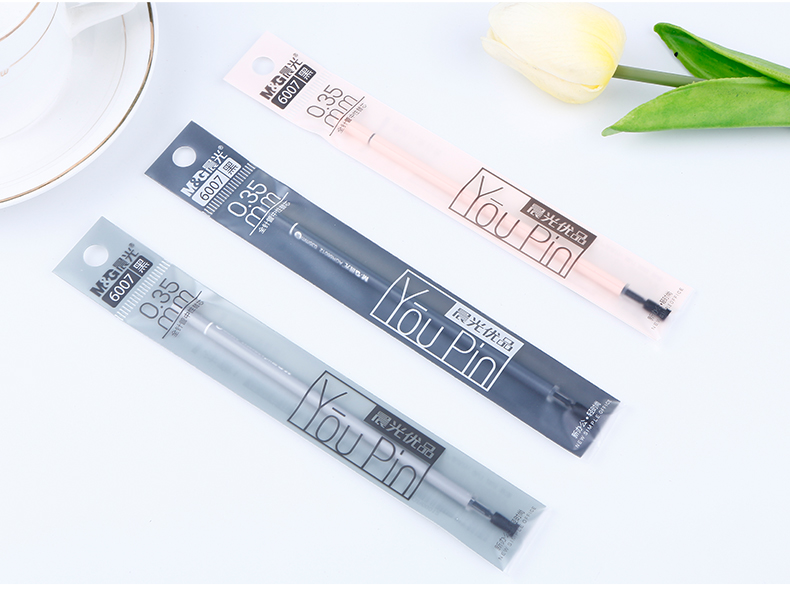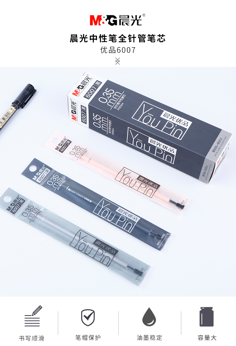 晨光(M&G)6007中性笔替芯黑色全针管头初中小学生用水笔替换芯0.35mm (20支/盒)