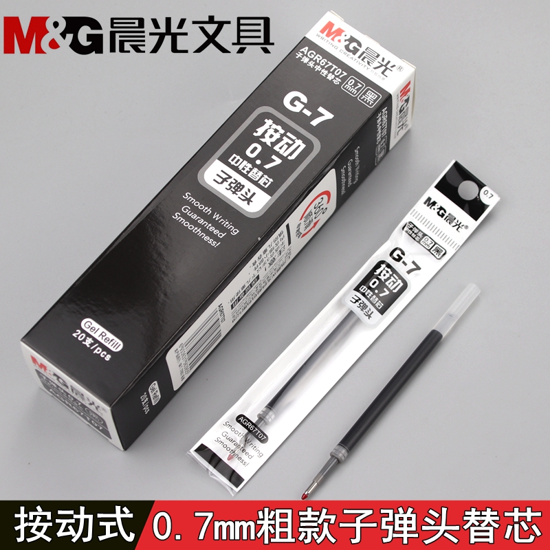 商品名称:晨光(M&G)AGR67T07按动中性笔替芯水性签字笔粗按动笔芯水笔芯0.7mm 黑色 (20支/盒)