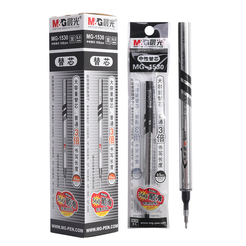 晨光(M&G)MG1530黑色中性笔芯 大容量葫芦头签字笔替芯 水笔芯 0.5mm (10支/盒)