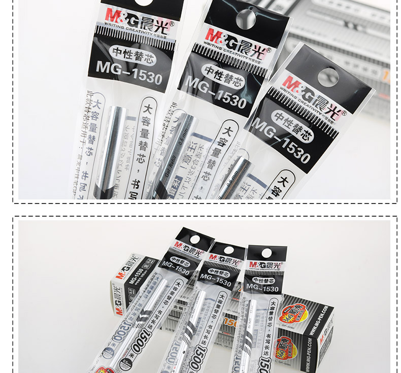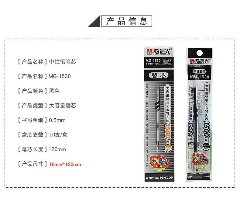商品名称:晨光(M&G)MG1530黑色中性笔芯 大容量葫芦头签字笔替芯 水笔芯 0.5mm (10支/盒)