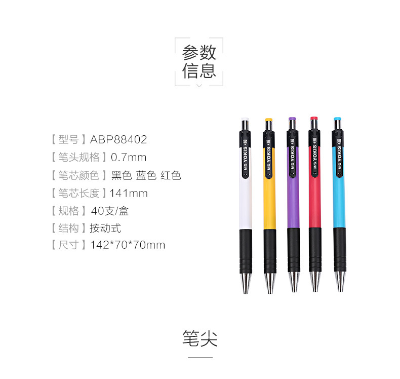 商品名称:晨光(M&G)ABP88402圆珠笔0.7mm按压式油性笔学生教师办公用顺滑圆珠笔 黑色/红色/蓝色 (40支/盒)