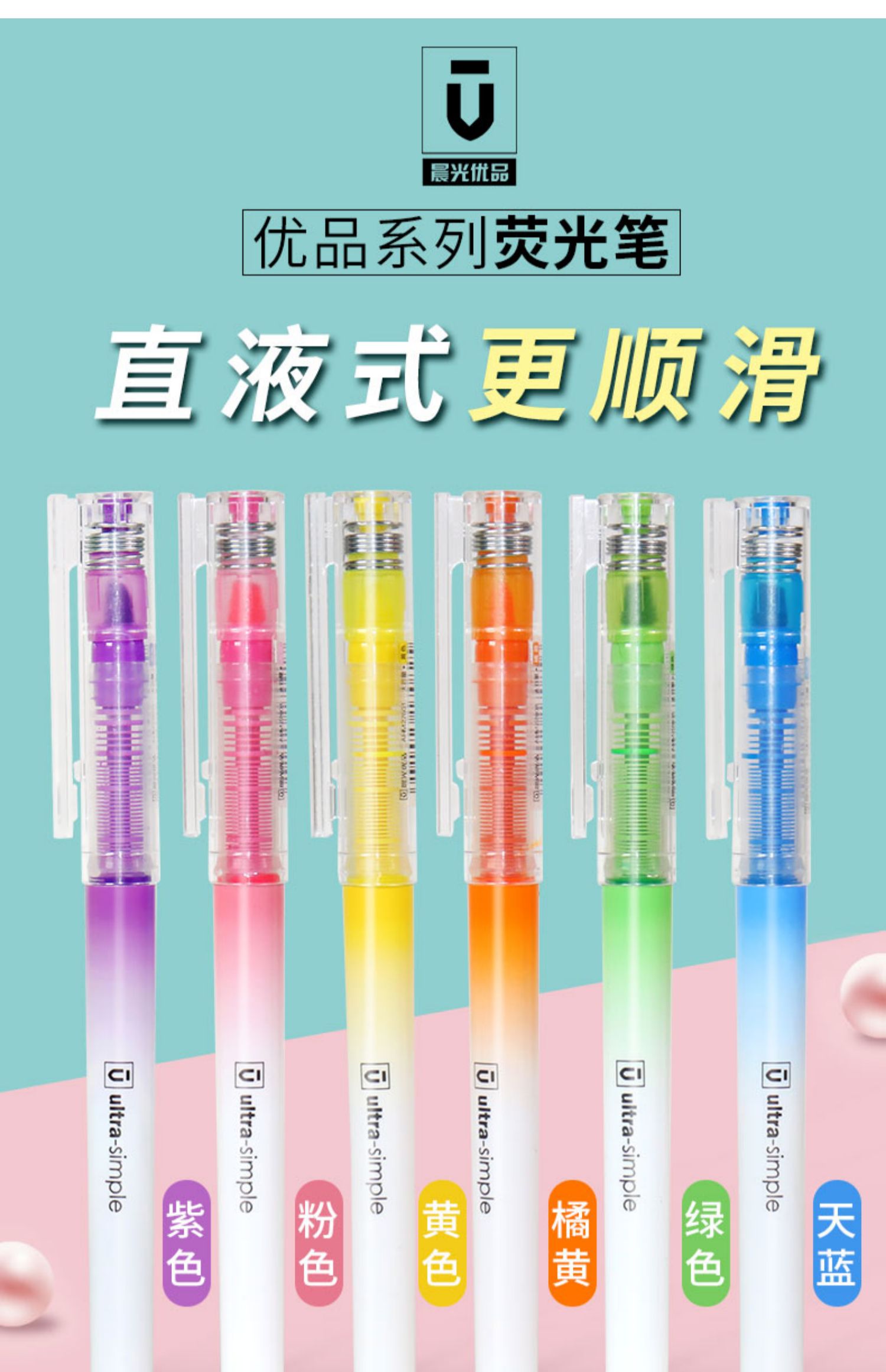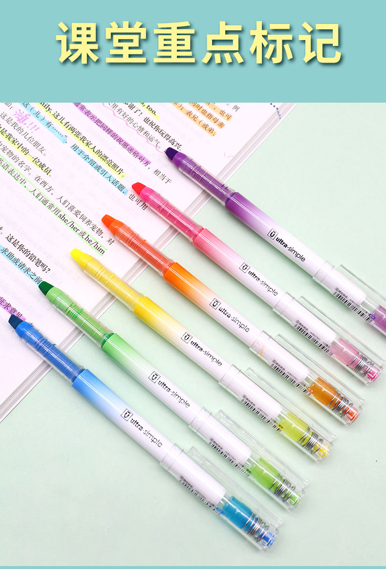 商品名称:晨光(M&G)AHM27601荧光笔记号笔粗划重点彩色银光笔按动标记笔 6色 (10支/盒)
