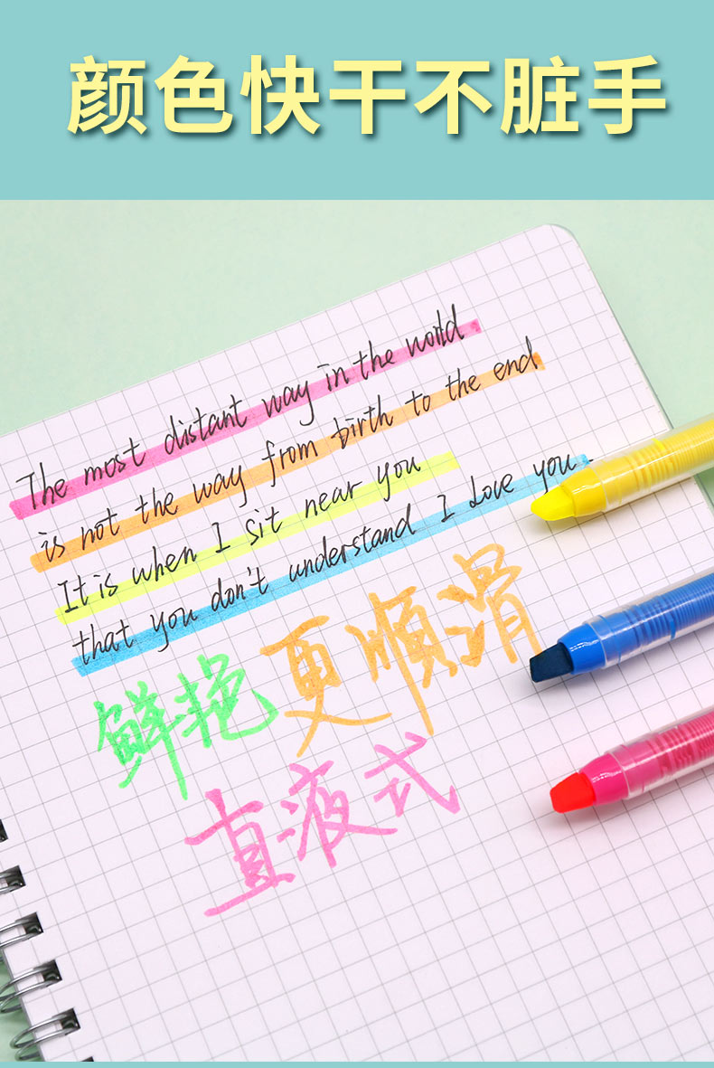 晨光(M&G)AHM27601荧光笔记号笔粗划重点彩色银光笔按动标记笔 6色 (10支/盒)