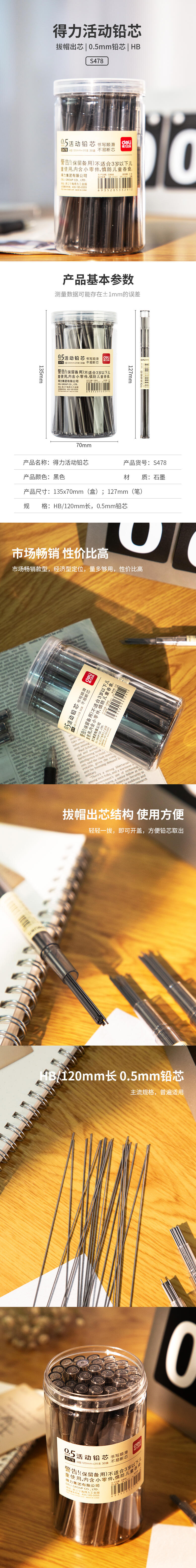 商品名称:得力(deli) 自动铅笔小学生塑料铅笔不断芯简约可爱儿童活动铅笔高颜值按动铅笔 0.5mmHB铅芯长款(120mm) S478