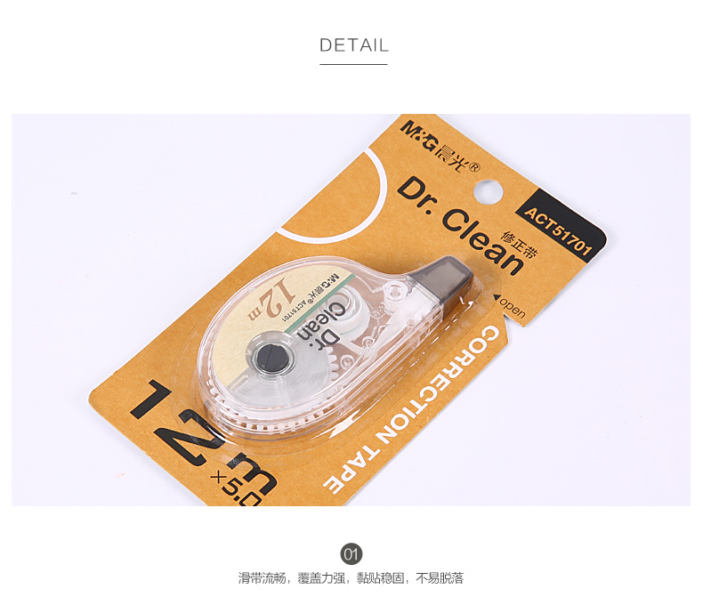商品名称:晨光(M&G)ACT51701修正带12米学生作业用修正涂改带 (12卡/盒)